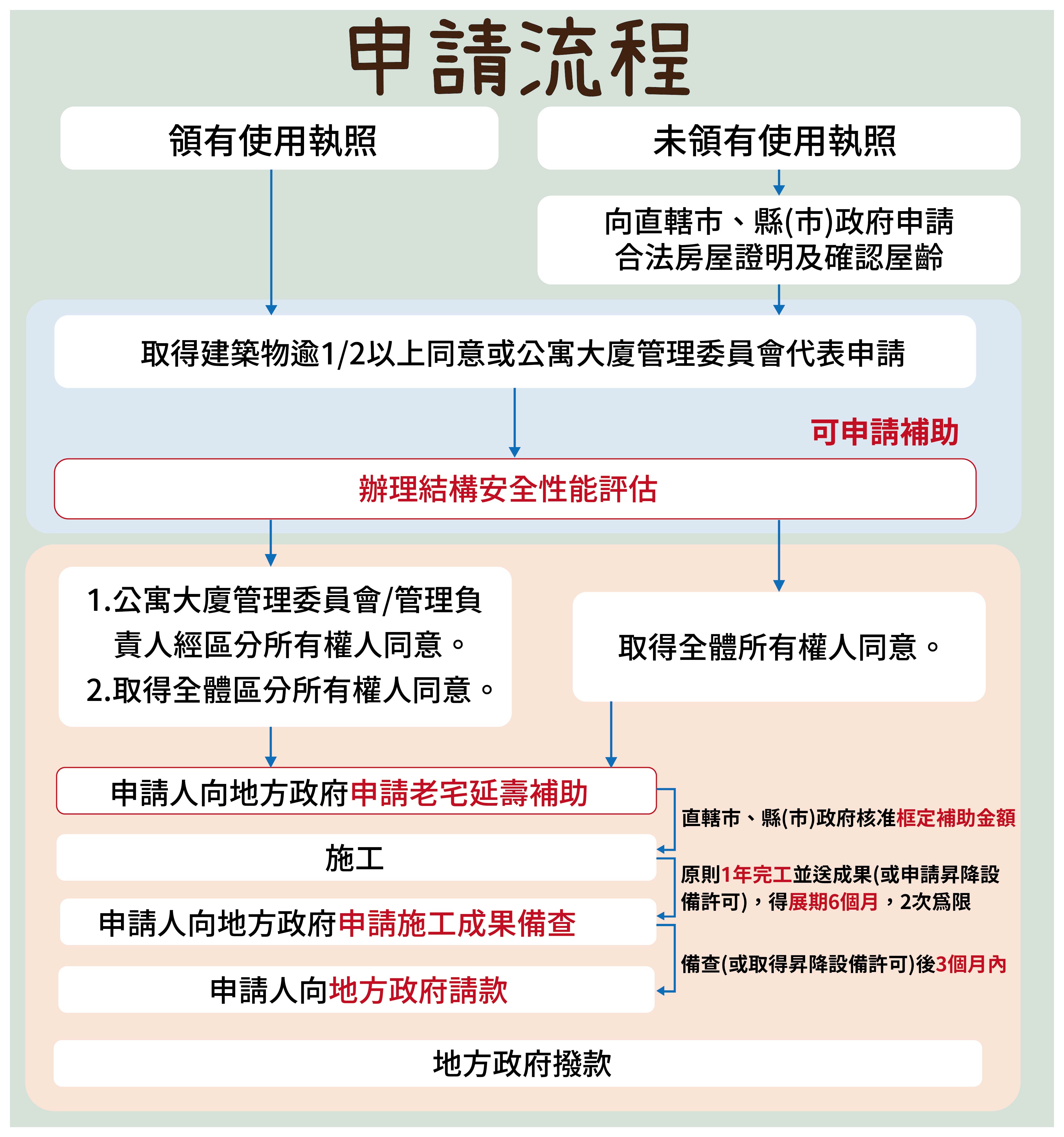如果要進行加強結構等「延壽」工程,流程如下:
